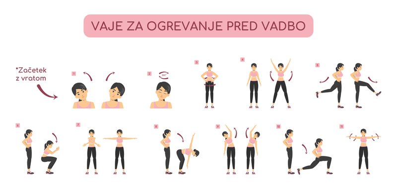 Nekaj minut pred vsakim tekom namenite ogrevanju in pripravi. Ta naj vsebuje hitro hojo ali lahkoten tek, s katerim se dvigne temperatura telesa, tkiva pa se pripravijo na telesno aktivnost s čimer se zmanjša verjetnost poškodb. Dodate lahko nekaj osnovnih gimnastičnih vaj, kot so kroženja, počepi, izpadni koraki, izmenični dvigi kolen in dvigi na prste. Prav tako je priporočljivo izvajanje dinamičnih ogrevalnih vaj, kot so nizki in srednji skiping, hopsanja ter poskoki.